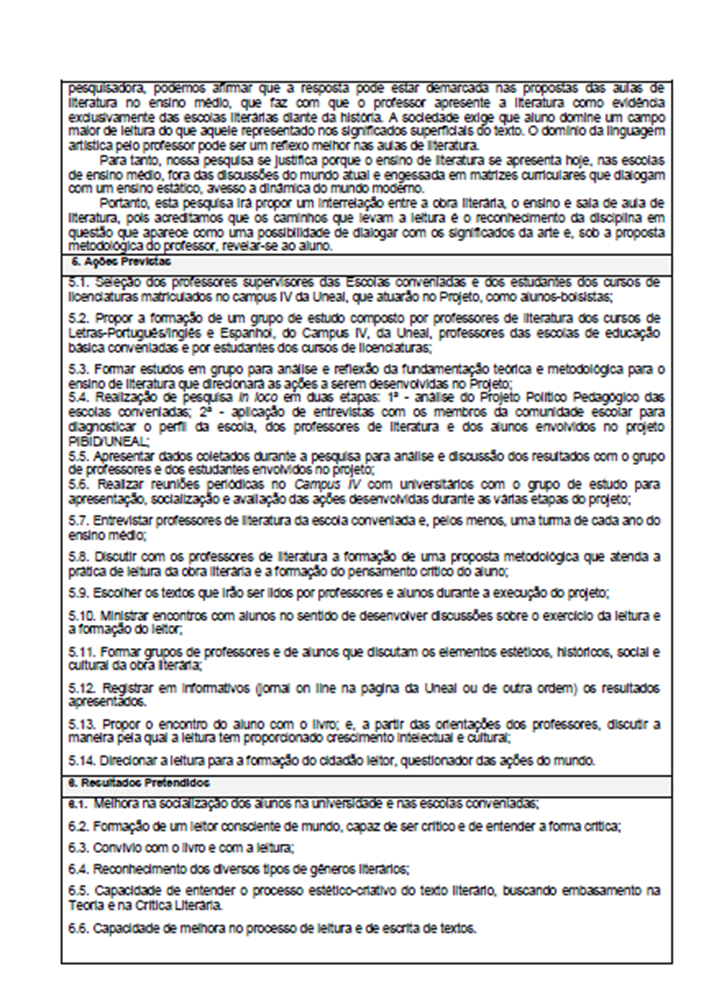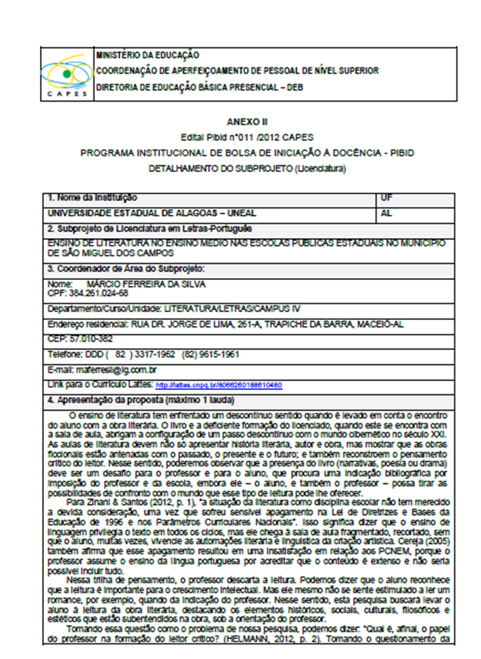 }Subprojeto: Licenciatura em letras-português: O ensino de literatura nas escolas públicas estaduais no município de São Miguel dos Campos.